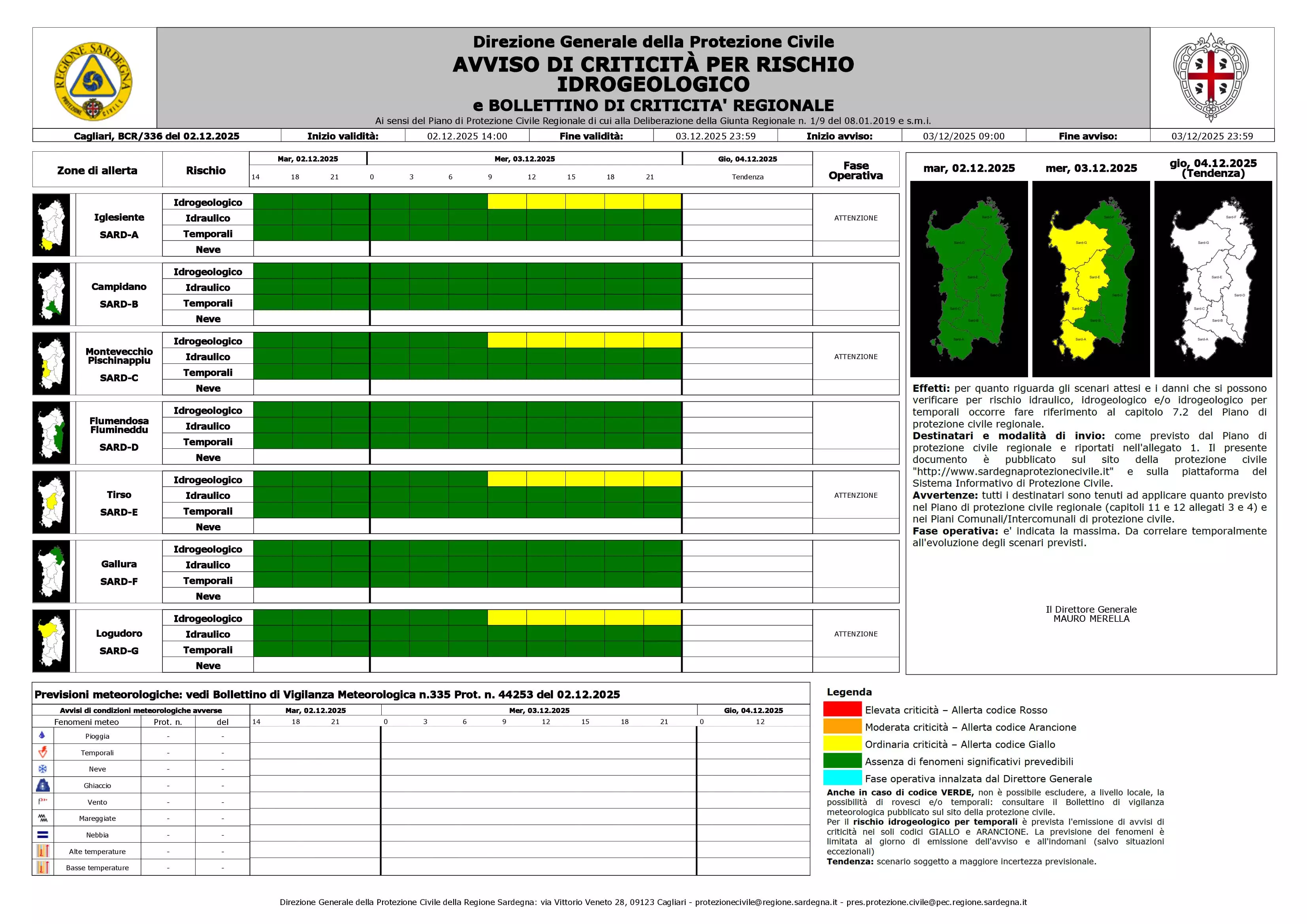 Descrizione AVVISO DI CRITICITÀ PER RISCHIO IDROGEOLOGICO E BOLLETTINO DI CRITICITA' REGIONALE PER IL GIORNO 3 DICEMBRE 2025